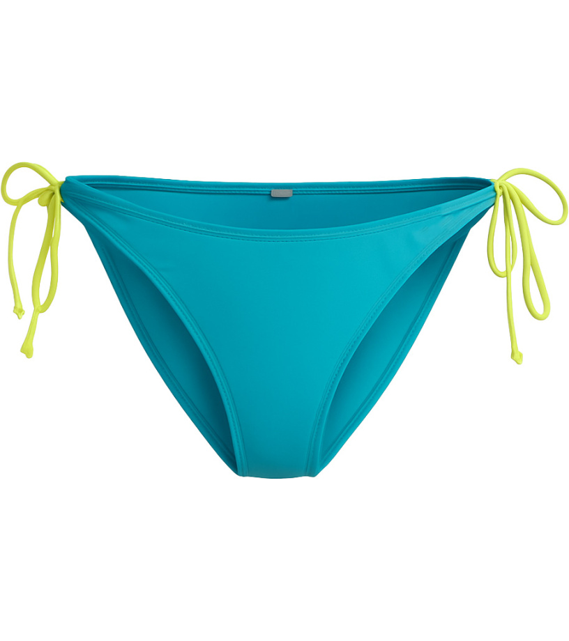 Dámské spodní díly plavek 4F v zářivě tyrkysové barvě s kontrastními žlutými šňůrkami na bocích působí svěže a letně. Jsou vyrobeny z rychleschnoucího, elastického materiálu, který se přizpůsobí postavě a zajistí pohodlí při plavání i opalování.