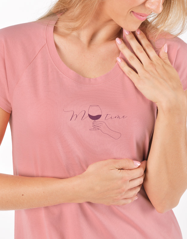 Základem kvalitního spánku je vaše pohodlí, ke kterému vám pomůže i pohodlné noční prádlo. Naše dámská noční košilka s krátkým rukávem je ideální volbou pro každou milovnici kvalitních materiálů a pohodlných střihů. Noční košilka má délku nad kolena, potisk na hrudi, kruhový výstřih, který neškrtí a materiál ze 100% bavlny.