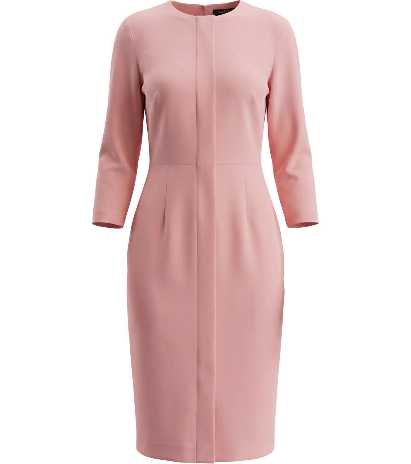 Dámské pouzdrové šaty s 3/4 rukávem. Délka šatů je lehce pod kolena. V přední části jsou šaty zdobeny pruhem látky. V zadní části zapínání na zip a rozparek. Vhodné jak na společenskou událost, ale i do kanceláře.