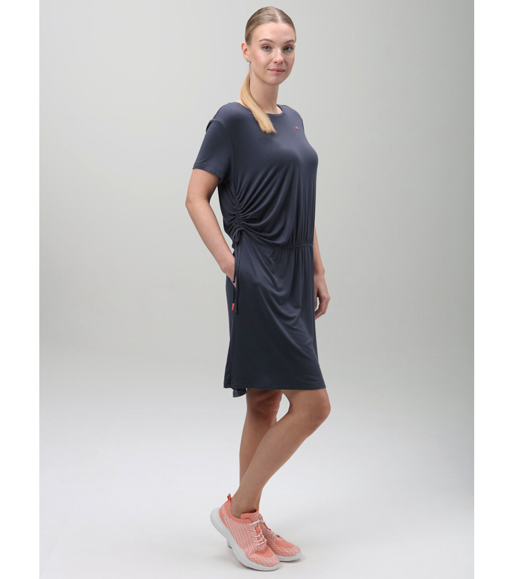 Oblečte se do šatů Loap BREVORA a poznáte, co je to mimořádné pohodlí. Jsou ušity z bambusu, kterému se ne nadarmo říká materiál budoucnosti. Bambusové vlákno je totiž extrémně jemné, přitom odolné a snadno se udržuje. Vyniká prodyšností, hypoalergenními a antibakteriálními vlastnostmi a navrch i schopností termoregulace. V létě příjemně chladí a skvěle odvádí pot, v zimě zahřeje. Šaty jsou ušity ve volnějším střihu s elastickým pasem se stahováním na tkaničku. Působí elegantně a využijete je na běžné nošení, zároveň se právě díky materiálu a dvěma praktickým kapsám skvěle hodí na volnočasové aktivity.