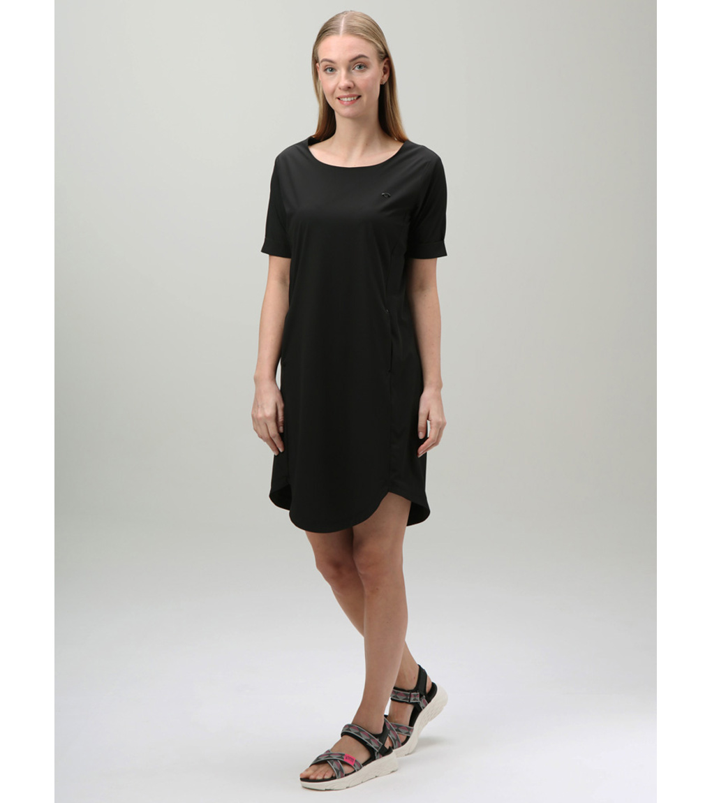Na výlet v šatech? Proč ne! V dámských šatech Loap UBDENA se budete cítit skvěle, ať už vyrazíte do přírody, na dovolenou nebo jen s dětmi hřiště. Materiál z nylonu a elastanu se postará o pohodlí i praktické vlastnosti jako nižší mačkavost nebo rychlejší schnutí. Šaty jsou lehké a prodyšné, takže do letních teplot zcela ideální. Volný střih s mírně prodlouženým zadním dílem a částečně elastickým pasem lichotí každému typu postavy. Na klíče nebo jiné drobnosti oceníte dvě kapsy na bocích.