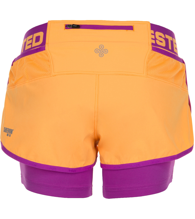 Dámské funkční kraťasy, elastický pas na gumu, zadní kapsa na mobilní telefon, vnitřní kompresní kraťasy, ploché švy, reflexní prvky, vhodné na běhání, do fitness centra.