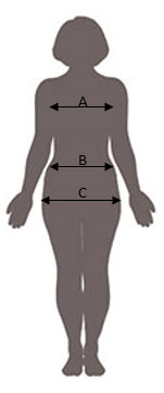 | B | Obvod pasu | 58 - 60 | 61 - 63 | 64 - 66 | 67 - 69 | 70 - 72 | 73 - 75 | 76 - 78 | 79 - 81 | 82 - 85 | 86 - 90 | 91 - 95 | 96 - 102 |