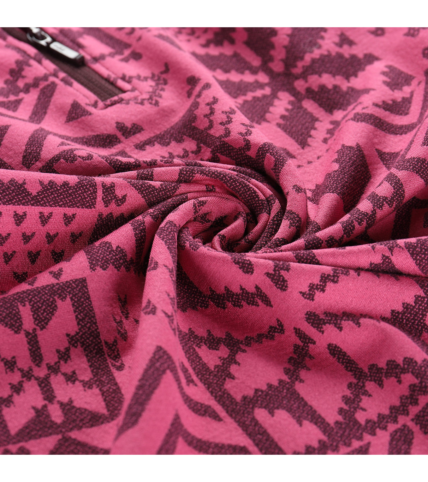 Dámské termo triko s dlouhým rukávem je vyrobeno z funkční směsi 57 % polyesteru, 37 % nylonu a 6 % elastanu, která zajišťuje vysokou paropropustnost, rychlé schnutí, pružnost a hřejivost. Strukturovaný materiál spolehlivě odvádí vlhkost a udržuje optimální tepelný komfort i při intenzivní aktivitě.