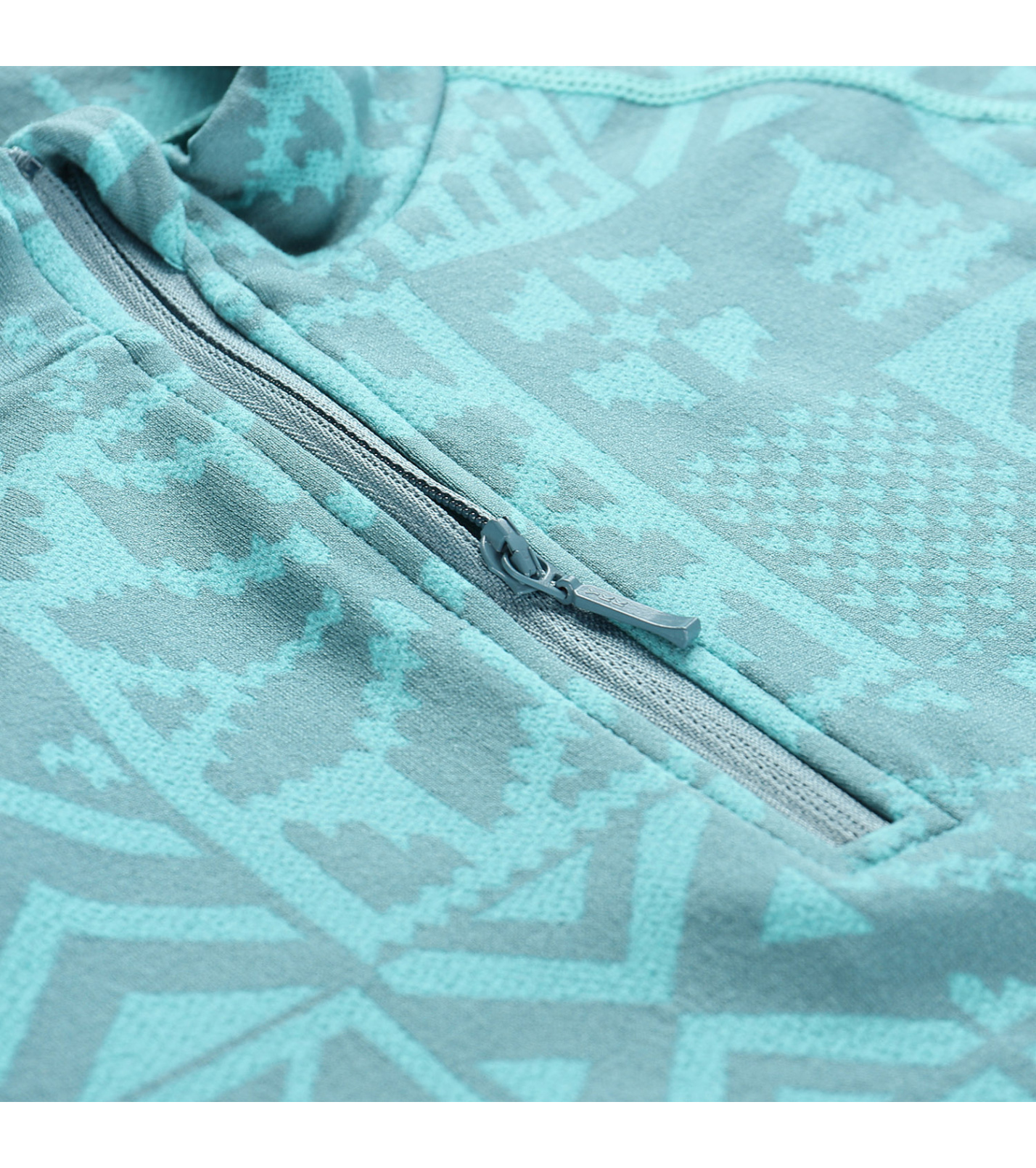 Přiléhavý, anatomicky tvarovaný střih podporuje volnost pohybu a komfort při nošení. Plochými švy jsou řešena pouze napojení rukávů, takže nedochází k otlakům či odírání pokožky. Praktické krátké zapínání na zip umožňuje snadnou regulaci teploty i pohodlné oblékání. Toto triko je ideální jako první vrstva pro sport a outdoorové aktivity v chladnějším počasí.