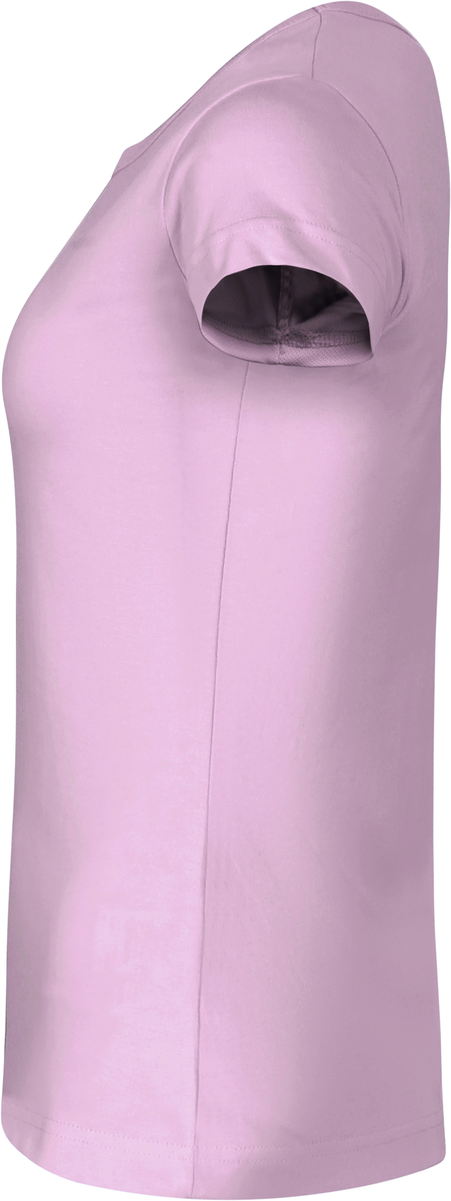 Dámské triko lehce vypasovaného střihu s bočními švy a kratší délkou rukávů z předsrážené bavlny odolné vyšším teplotám pratelné na 95 °C (bílé) a 60 °C (barevné) vhodné pro potisk a výšivky má průkrčník lemován žebrovým úpletem 1:1 a zpevnění ramenních švů páskou.